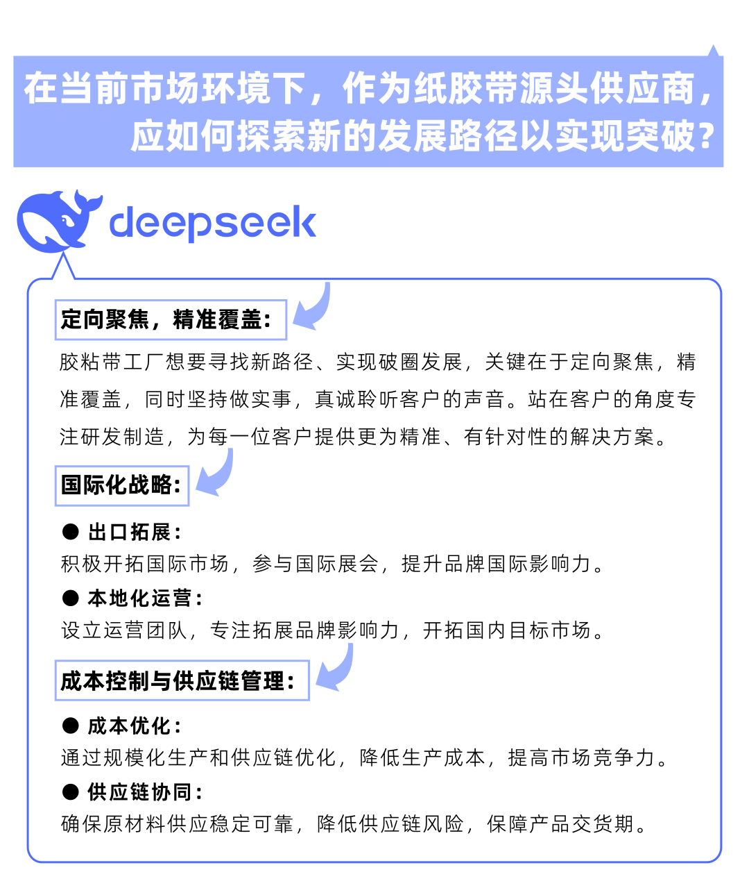 探索紙(zhǐ)膠帶工(gōng)廠(chǎε™✔ng)破圈之道(dào):DeepSeek給出的(de)驚喜答(₩>"dá)案